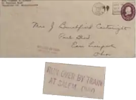 Оттиски штемпелей почтовых вагонов содержат словесное указание на железнодорожный характер пересылки погашенной ими корреспонденции, к примеру[7][8][9]: