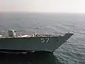 Крейсер CG-57 «Лейк-Чемплейн» с частично утерянным штормовым носом