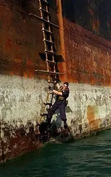 Штормтрап находится у борта судна (корабля) в месте посадки в спасательные шлюпки, спасательные плоты, лоцманский катер и прочие плавсредства.