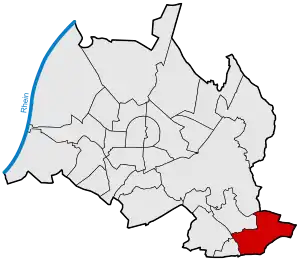 Расположен рядом с городскими районами Пальмбах и Грюнветтерсбах на западе, Хоэнветтерсбах на северо-западе и Дурлах на севере.