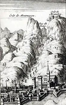 По сторонам дефиле возвышались горы: справа гребень Монморон с деревушкой и фортом Жаллон, а слева гребень Монтабон. Со стороны Шомона проход был закрыт большим ретраншементом в форме полумесяца, позади которого по склону располагались баррикады, фланкированные редутами, расположенными в двухстах шагах один от другого. Дефиле выходило к предместью Сузы, над которым возвышался монастырь кордельеров. Укрепления обороняли три тысячи пьемонтцев и миланцев. Герцог Савойский, его сын принц Пьемонтский, генерал-лейтенант граф де Верруа и командующий кавалерией маркиз де Вилль, весьма удивленные французским наступлением в столь неподходящее время года, готовились выдержать атаку[13].