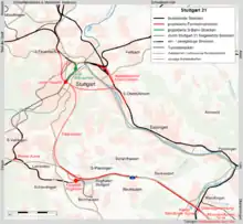 Штутгарт 21 — проект реорганизации железнодорожного узла Штутгарта, предусматривающий полный снос действующего тупикового центрального ж/д вокзала и постройку недалеко от него нового подземного сквозного вокзала, а также сопутствующих объектов инфраструктуры.