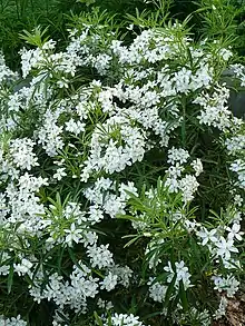 ![]() Шуазия тройчатая (Choisya ternata). Общий вид цветущего растения. | ||||||||||||||