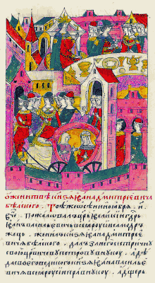 Той же осенью 8-го ноября в четверг пожаловал царь и великий государь Иван Васильевич, всея Руси самодержец, женил князя Ивана Дмитриевича Бельского, дал за него сестоичну свою, царевича Петра внучку, а деда своего великого князя Ивана Васильевича всея Руси правнучку, а дочь князя Василия Васильевича Шуйского; а выдавал государь от себя со своего двора.