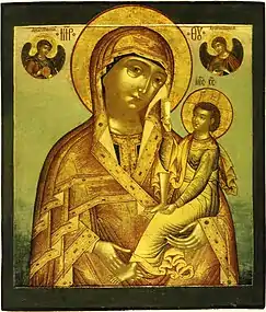 ![]() Литография иконы Шуйско-Смоленской Богоматери из книги П. И. Гундобина 1862 года. Возможно, изображает оригинал 1654 года из Шуи[1][2]. | |