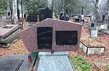 Памятник установленный на могиле Юлиана Шульмейстера в 1992 г. и разрушенный вандалами - «Служители ада» Львов Каменяр 1985;