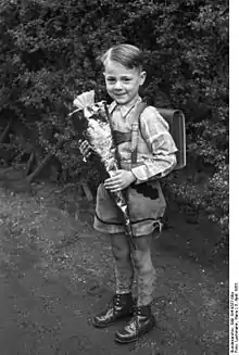 В автобиографической повести для детей «Когда я был маленьким» немецкий писатель Эрих Кестнер вспоминает о первом дне в дрезденской школе в 1906 году и «свой фунтик[1] со сластями с шёлковым бантом». Он нёс его показать соседке, но споткнулся и упал, и содержимое кулька вывалилось на пол: «Я стоял по щиколотку в конфетах, пралине, финиках, шоколадных зайцах, винных ягодах, апельсинах, пряниках, вафлях и обёрнутых в золотую фольгу майских жуках»[2].