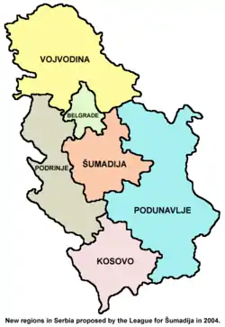 Некоторые политические партии Сербии (Демократическая партия Сербии и Шумадийская коалиция) предлагают реформировать административное деление Сербии с целью стабилизировать ситуацию в стране и создать условия для более сбалансированного развития регионов. Вместо нынешних двух автономных провинций (Косова и Воеводины) и центрального административного региона предлагается разделить Сербию на 6 регионов: