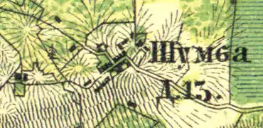 На карте профессора С. С. Куторги 1852 года она обозначена, как деревня Шумба[10].