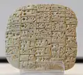 Вексель поля и дома, из Шуруппака; ок. 2600 года до н. э.; высота: 8,5 см, ширина: 8,5 см, глубина: 2 см; Лувр