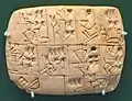 Отчёт о рационах ячменя, который ежемесячно выдаётся взрослым и детям, написан клинописью на глиняной табличке в 4 году правления царя Урукагина, ок. 2350 года до н. э.