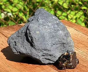 Цвет чёрный, тёмно-серый, коричневый. Твёрдость — 3,5…4. Излом ступенчатый, раковистый. Плотность — 1,80…2,84 г/см3 в зависимости от состава; пористость — 0,5…5 %; прочность на сжатие 100—276 МПа; модуль упругости (Е) — 0,31·105 МПа. Электропроводен, электропроводность — (1-3)×103 См/м; теплопроводность — 3,8 Вт/м·K. Среднее значение коэффициента теплового расширения в интервале температур от +20 до +600 °С — 12·10−6 К−1. Теплотворная способность 7500 ккал/кг[2].