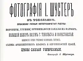 Старший брат Монс Шустер проживал в арендованном доме вдовы Игнатия Лютыка, польского дворянина, жившему в Тобольске в 1865—1879 годах. Игнатий Лютык являлся основателем фотомастерской, которая располагалась в этом же доме. Йосель Шустер делает снимки в мастерской и отправляет их в 1889 году на Всемирную выставку в Париж, за что в 1890 году получил высочайшую благодарность великой княгини Елизаветы Фёдоровны. 17 марта 1891 года Монс Шустер, арендовав фотомастерскую, открыл свой фотосалон в доме 22 по улице Большой Архангельской[4].