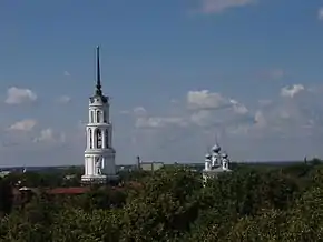 На территории городища расположен Покровский собор (1754). Также сохранились храмы: Крестовоздвиженский (1693, перестроен в 1823, росписи Т. Медведева 1820-х годов), великомученника Георгия (1703, перестройки в 1817 и 1838). На Зелёной площади стоит храмовый ансамбль Никольского собора (1756; северный придел — 1833), Воскресенского собора (1792—1798, расширен в 1912—1913) и колокольни (1810—1833, архитекторы Маричелли, Е. Я. Петров). На северо-западной окраине города находится храм Спаса Преображения (святителя Николая Чудотворца) (1833)[2].