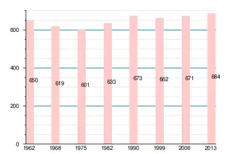 Население коммуны в 2011 году составляло 672 человека[7], в 2012 году — 674 человека[8], а в 2013-м — 684 человека[6].