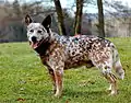 Под пятнистостью, или пёстрым окрасом, понимаются темные (эумеланиновые) пятна различной формы на более светлом (осветлённом, седом) основном фоне[36]. Разновидностью пёстрого окраса является мраморный окрас[36], хотя он и определяется особым геном.