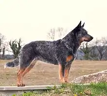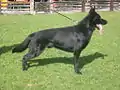Дикий тип шерсти — исходный тип шёрстного покрова, свойственный диким предкам собаки: удлинённая прямая гладкая шерсть на шее, корпусе и хвосте и короткая, гладкая, очень плотная шерсть на голове и конечностях. Подшёрсток может иметь различную густоту и развитие. Такая шерсть у немецких овчарок, лаек, гончих[9]. Различают по крайней мере три разновидности шерсти дикого типа: нормальная (лайки), укороченная (стаффордширский терьер), удлинённая (кеесхонд)[10].
