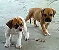 | — равномерное распределение обоих пигментов по волосу и телу | CBD 103[48] | — сплошное распределение пигмента по волосу и корпусу собаки, доминантный сплошной окрас; — тигровость; — равномерное распределение пигмента подавлено, проявляется действие локуса . | • Доминантный сплошной[49], тигровый • Литтл полагал, что доминантный чёрный окрас определяется геном [50], а тигровый геном [12] • Распространение по корпусу тигровин варьирует в широком диапазоне — от нескольких тёмных полос на рыжем до почти сплошного затемнения; неизвестно, обусловлена ли степень тигровости наследственными, случайными факторами, или их комбинацией[46]. | |