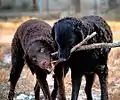 | (англ. wavy coat) — извитость волос | KRT71[21] | — прямая шерсть — волнистая шерсть — курчавая (скрученная, спиральная) шерсть | Ряд исследователей предполагают, что курчавая шерсть разных пород может определяться другим локусом ()[22] |