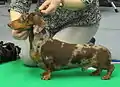 | (англ. wire hair) — жёсткость шерсти | — жёсткая шерсть — шерсть дикого типа — тонкая мягкая шерсть | Селекционные исследования показали, что наследование жёсткой шерсти сцеплено с будастостью и, вероятно, определяется геном RSPO2, отвечающим также за некоторые другие признаки[24] | |