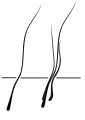 | (англ. ripple coat) — рифлёная шерсть | — нормальный волос — рифлёный волос | Проявляется в виде полосатого рисунка у щенков некоторых пород (бладхаунд, веймаранер) и обычно исчезает в течение недели. У некоторых особей рифлёность волоса сохраняется[25]. | |