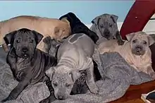 | (англ. hairlessness) — бесшёрстность | — бесшёрстность — развитый шёрстный покров | • Вероятно, за отсутствие шерсти отвечает ген FOXI3[17] • В гомозиготном состоянии ген летален • Предположительно, существуют и другие локусы, обеспечивающие отсутствие волосяного покрова, в том числе рецессивное[26], так называемую американскую бесшёрстность[17] |
