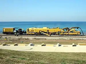 - Полуприцепные щебнеочистительные машины используются при капитальном ремонте пути для очистки, уплотнения и планировки балласта. Оборудование смонтировано на раме, связанной с трактором через упряжное устройство и тяговую раму трактора. Задняя часть рамы опирается на два катка. Балласт, вырезаемый подрезным ножом, подаётся в щебнеочистительное устройство боковыми крыльями. Очищенный балласт разравнивается по всей ширине балластной призмы плужным планировщиком. Производительность щебнеочистительной машины до 1200 кубических метров балласта в час.