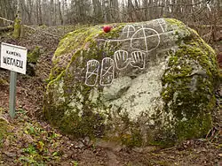 Представляет собой отдельнолежащий гранитный валун размером 1,5 × 2 м. На камне изображены солнечные (солярные) знаки, контуры ладоней и медвежьи стопы.