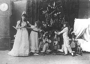 В канун Рождества, в доме доктора Штальбаума начинают собираться гости. Со взрослыми следуют девочки с куклами и маршируют мальчики с саблями.