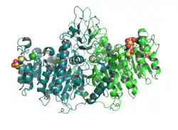 - Llinas P, Stura EA, Ménez A, Kiss Z, Stigbrand T, Millán JL, Le Du MH (July 2005). “Structural studies of human placental alkaline phosphatase in complex with functional ligands”. J. Mol. Biol. 350 (3): 441—51. DOI:10.1016/j.jmb.2005.04.068. PMID 15946677.