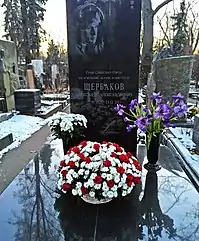 - На Новодевичьем кладбище установили памятник лётчику-испытателю Александру Щербакову.