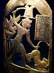 В Древнем Египте эпохи Древнего и Среднего царств основным типом щита был прямоугольный, с закругленным или заостренным верхом, из деревянных планок, обтянутых коровьей шкурой с мехом[4].