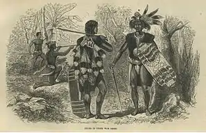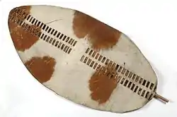 Некоторые щиты были обтянуты шкурой с шерстью, как часто делали в Африке, или имели набивку из шерсти, перьев, травы или даже бумаги между двумя слоями кожи, как у некоторых равнинных индейцев. Это повышало его амортизирующее качество.