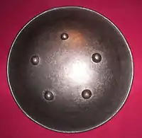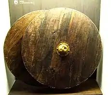 Эти щиты происходят от изначальных и имеют разные размеры. Иногда они закрывали воина от щеки до колена, но чаще их диаметр не превышал 70 см, а вес составлял всего 0,5 кг.
