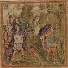 Наиболее оригинальными были ассирийские щиты, снабжённые козырьком. Они защищали от обстрела не только спереди, но и, частично, сверху. Щитоносцы же вели наблюдение через смотровые щели.