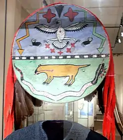 Рисунки на поверхности щита, и другие элементы его оформления у многих первобытных народов играли чрезвычайно важную роль. Особенно известны в этом плане щиты североамериканских индейцев района Великих равнин, которые приписывали этому оформлению важные охранительные и мистические свойства[15].