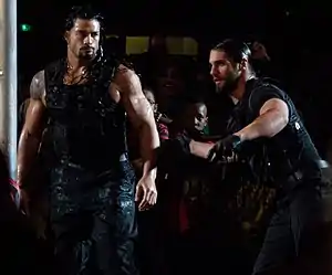 ![]() "Щит" в мае 2014 года. Слева направо: Сет Роллинс, Роман Рейнс, Дин Эмброус | |