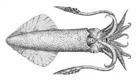 У головоногих моллюсков из надотряда десятируких (Decapodiformes) щупальцами называют модифицированную пару рук, используемую для ловли добычи[3].