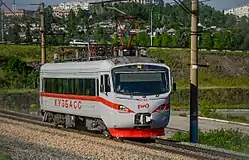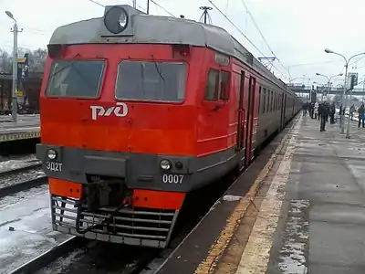 ![]() ЭД2Т-0003 в корпоративной окраске ОАО «РЖД» на ст. Поварово-3 | |