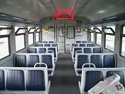 Пассажирские салоны вместительны, оборудованы удобными полумягкими сиденьями (предусмотрена установка мягких и жестких сидений), радиовещательной аппаратурой; на боковых стенах расположены багажные полки, в простенках окон - вешалочные крючки.
