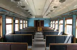 Бо́льшая площадь внутреннего пространства вагонов отведена под пассажирский салон. Основную площадь салона занимают скамейки (сиденья) по бокам от центрального прохода, над которыми размещаются полки для багажа и вешалки для одежды. Cкамейки, как правило, 6-местные (по 3 места с каждой стороны), деревянные реечные или с обивкой из кожзаменителя, расположены в 2 ряда вдоль салона, с посадкой лицом вдоль направления движения. Салон промежуточных вагонов имеет одно узкое и девять широких окон, головных — одно узкое и семь широких. В промежуточных вагонах число сидячих мест составляет от 107 до 110, в головных — от 77 до 88. В 10-вагонном составе общее число сидячих мест может составлять до 1050, а общая пассажировместимость (расчётная) — около 1,6 тыс. человек.