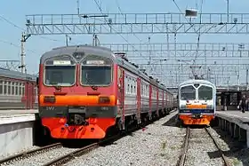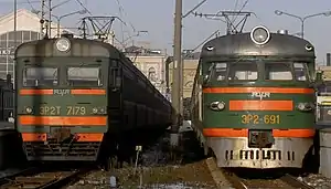 ![]() ЭР2-1017 с круглой кабиной на перегоне Давыдово — Дулёво (Московская обл., 2004 год) ![]() ЭР2-1083 с плоской кабиной на Ярославском вокзале (Москва, 1982 год) | |