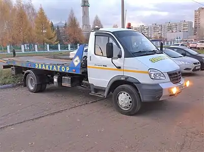 Эвакуа́тор — специальное транспортное средство, предназначенное для погрузки, разгрузки и перевозки автомобилей в случае их поломки, аварии, нарушения водителем ряда правил дорожного движения. Перевозка осуществляется посредством полной или частичной погрузки либо буксировки транспортного средства. Оборудован специальной платформой с лебёдкой, либо с манипулятором.