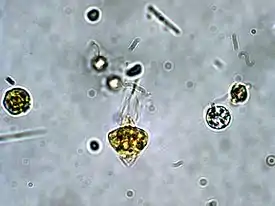 Эвгленозои[2] (лат. Euglenozoa) — тип одноклеточных протистов. Включает разнообразные свободноживущие виды, а также ряд паразитов, в том числе вызывающих болезни человека. Размер обычно 15—40 мкм, однако некоторые виды эвглен достигают 500 мкм в длину. Группа состоит в основном из монофилетических таксонов.