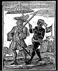 ![]() Генри Эвери, сопровождаемый рабом. Гравюра XVIII века | |