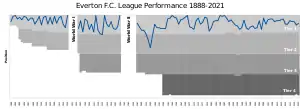 В настоящее время клуб проводит 119-й сезон в высшем дивизионе чемпионата Англии, что является рекордным показателем среди всех английских клубов. Клуб также 9 раз становился чемпионом Англии, что является четвёртым результатом среди английских клубов. «Эвертон» непрерывно играет в высшем дивизионе английского футбола с 1954 года и является одним из клубов-основателей Премьер-лиги в 1992 году.