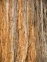 Кора волокнистая, серая, остается на стволе и крупных ветвях.