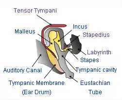 - Мышца напрягающая барабанную перепонку, m. tensor tympani. Стременная мышца, m. stapedius. Функции мышц среднего уха.. meduniver.com. Дата обращения: 12 марта 2017.