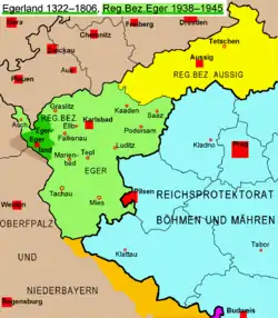 После начала немецкой оккупации Чехословакии в 1938 году, Эгерланд, как часть Судетской области, отошел нацистской Германии и стал частью административного округа Эгер с центром в Карловых Варах (нем. Karlsbad). Он включил в себя обширные чешские территории вплоть до окрестностей Пльзеня, такие города как Фалькнов-на-Огрже, Марианске-Лазне (нем. Marienbad), Тахов и др.