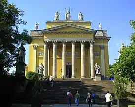 - Базилика. Построена в 1831—1836 году в стиле неоклассицизм, на момент постройки была крупнейшим храмом Венгрии, после завершения строительства базилики в Эстергоме в 1856 году стала вторым. Архитектор Йожеф Хильд.